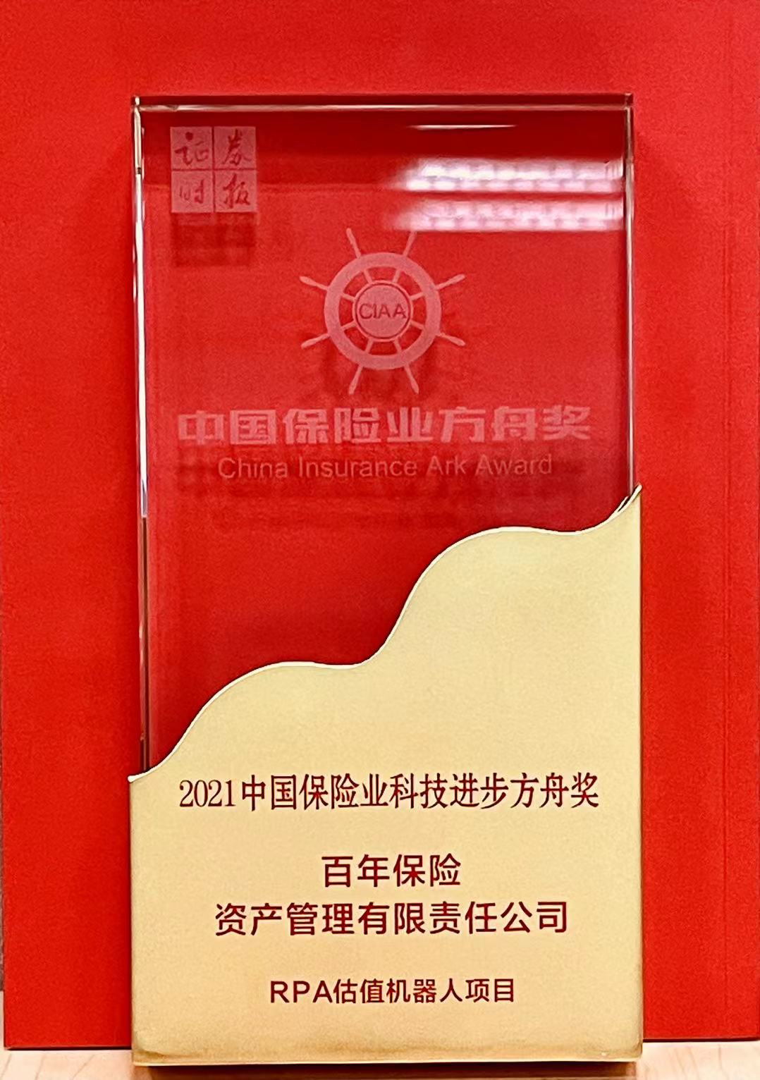 百年保险资管荣获“2021年中国保险业科技进步方舟奖”