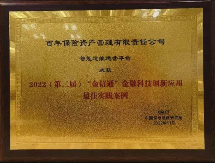 百年保险资管公司荣获2022(第二届)“金信通”金融科技创新应用最佳实践案例奖